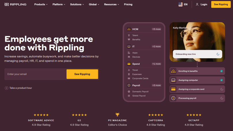 With Rippling, businesses can merge payroll management with HR functions, such as benefits administration and compliance tracking. It also enables managing IT tasks, including device setup and access to apps. This simplifies workflows and reduces the need for multiple systems.