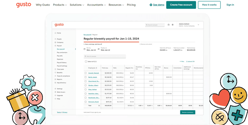 Gusto is a great pick for small business owners seeking an intuitive payroll service with automated payments, tax calculations, and leave management.