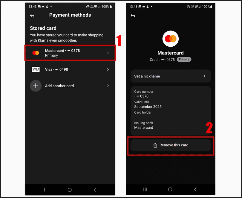 - Delete credit card data. If you’re concerned about the safety of your payment details in the Klarna system, you can remove your card information from your account. This will allow you to use the service when needed without storing sensitive data on the platform.