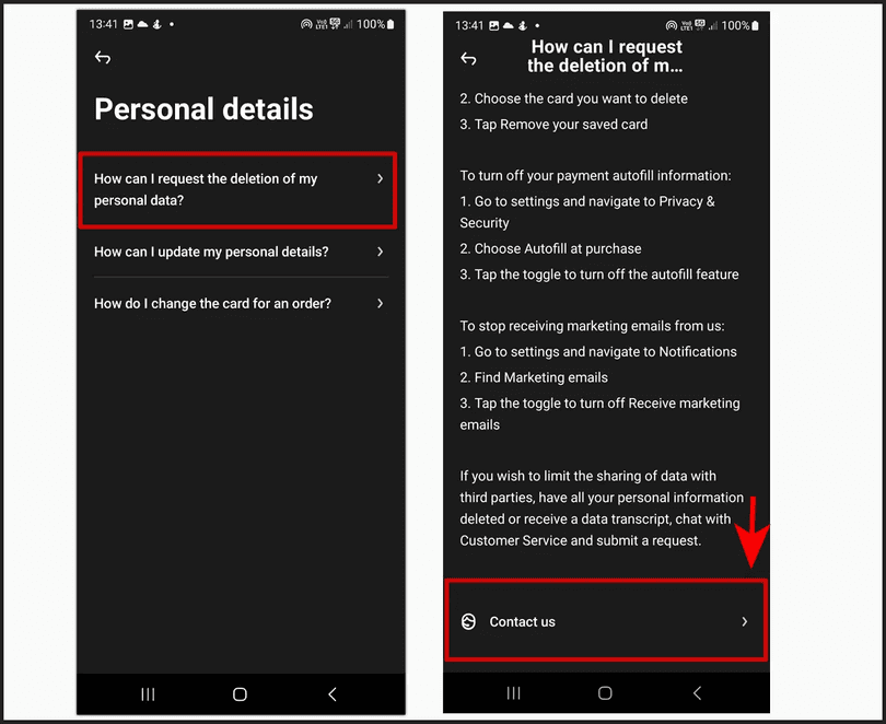 - Step 3. In the Personal Data section, find the data deletion option and scroll to the bottom of the page. Click the “Contact Us” button. You can use any of the methods provided in this section.