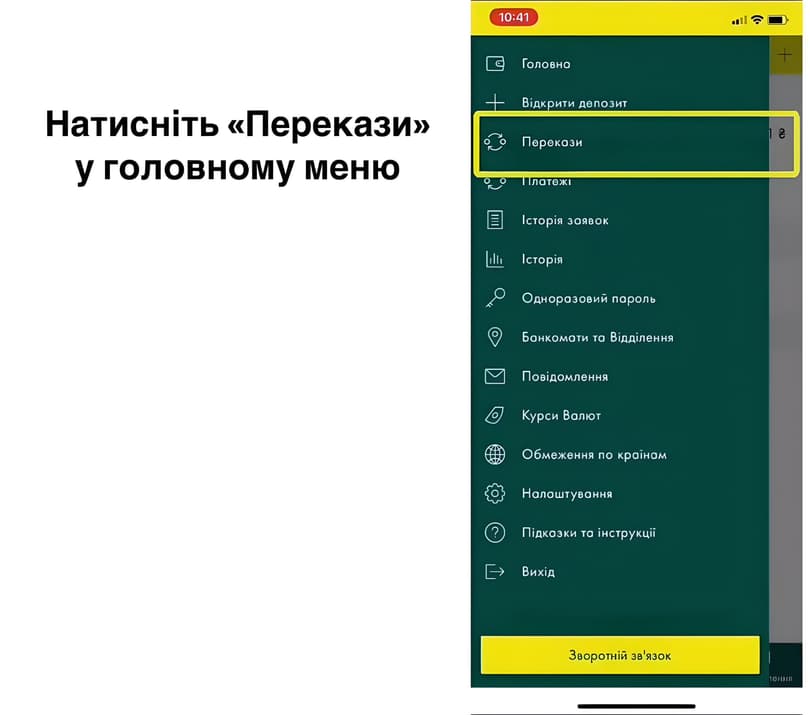 Інтуїтивний інтерфейс дозволяє швидко здійснити переказ коштів: