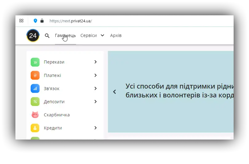 - Авторизуйтеся в акаунті онлайн-сервісу Приват24.