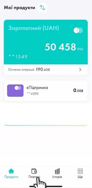 Оберіть розділ «Платежі».