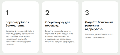 Перш ніж вибрати цей спосіб зняття грошей, ретельно ознайомтесь з усіма деталями та можливими витратами, такими як комісія за переказ і вартість відкриття рахунку та умови конвертації.