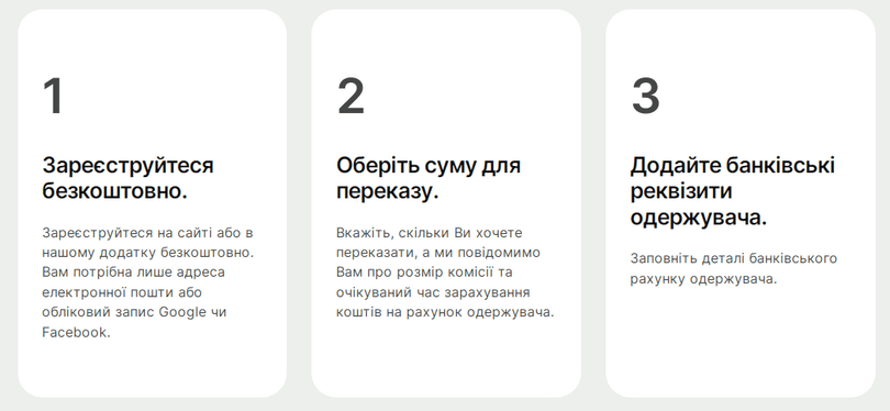 Для використання TransferGo потрібно зареєструватися. Реєстрація вимагає введення активного номера телефону та його підтвердження. Якщо передбачається постійний рух коштів і ви плануєте здійснювати регулярні перекази, вам слід пройти верифікацію особи після другого переказу. Зауважте, що комісію за переказ може стягувати банк, власником картки якого є користувач.