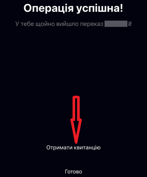 За необхідності вкажіть код підтвердження з СМС. У разі потреби в отриманні квитанції, після сповіщення про успішну операцію натисніть на «Отримати квитанцію».