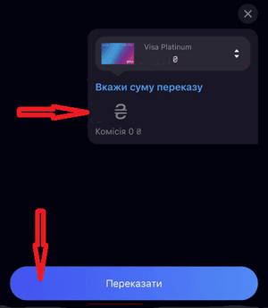 Вкажіть потрібну суму та підтвердіть дію натисканням на «Переказати».