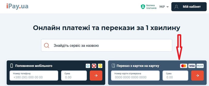 В інших сервісах алгоритм дій буде приблизно таким, як і на iPay.ua.