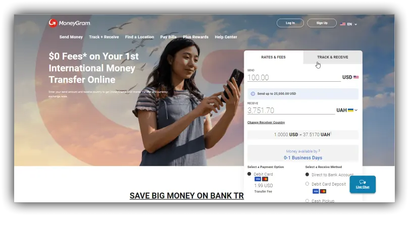 - Значні обмеження максимальної суми переказу: максимум 1,900 доларів онлайн або 495 доларів готівкою.