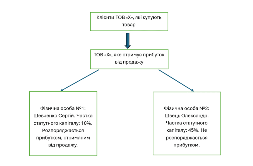 КБВ у нашому випадку – фізична особа №1. Попри свої 10%, які начебто не дозволяють йому вважатися вигодоодержувачем на формальному рівні, саме Сергій – наш бенефіціарний власник ТОВ.