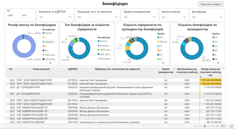 Можна спочатку внести дані про компанію, після чого отримати інформацію про КБВ, і навпаки: вписати ПІБ людини та дізнатися, на які компанії ця особа чинить вирішальний вплив.